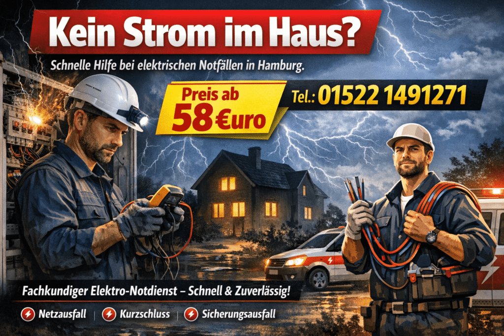 Wenn kein strom im haus vorliegt und die Ursache nicht sofort sichtbar ist, hilft eine klare Messstrategie mit definierter Reihenfolge, damit der Fehler nicht „umgangen“, sondern wirklich beseitigt wird. Regionale Einsatzmuster wie stromausfall hamburg poppenbüttel zeigen, dass gerade bei gemischten Installationen die eindeutige Zuordnung der Stromkreise entscheidend ist.
